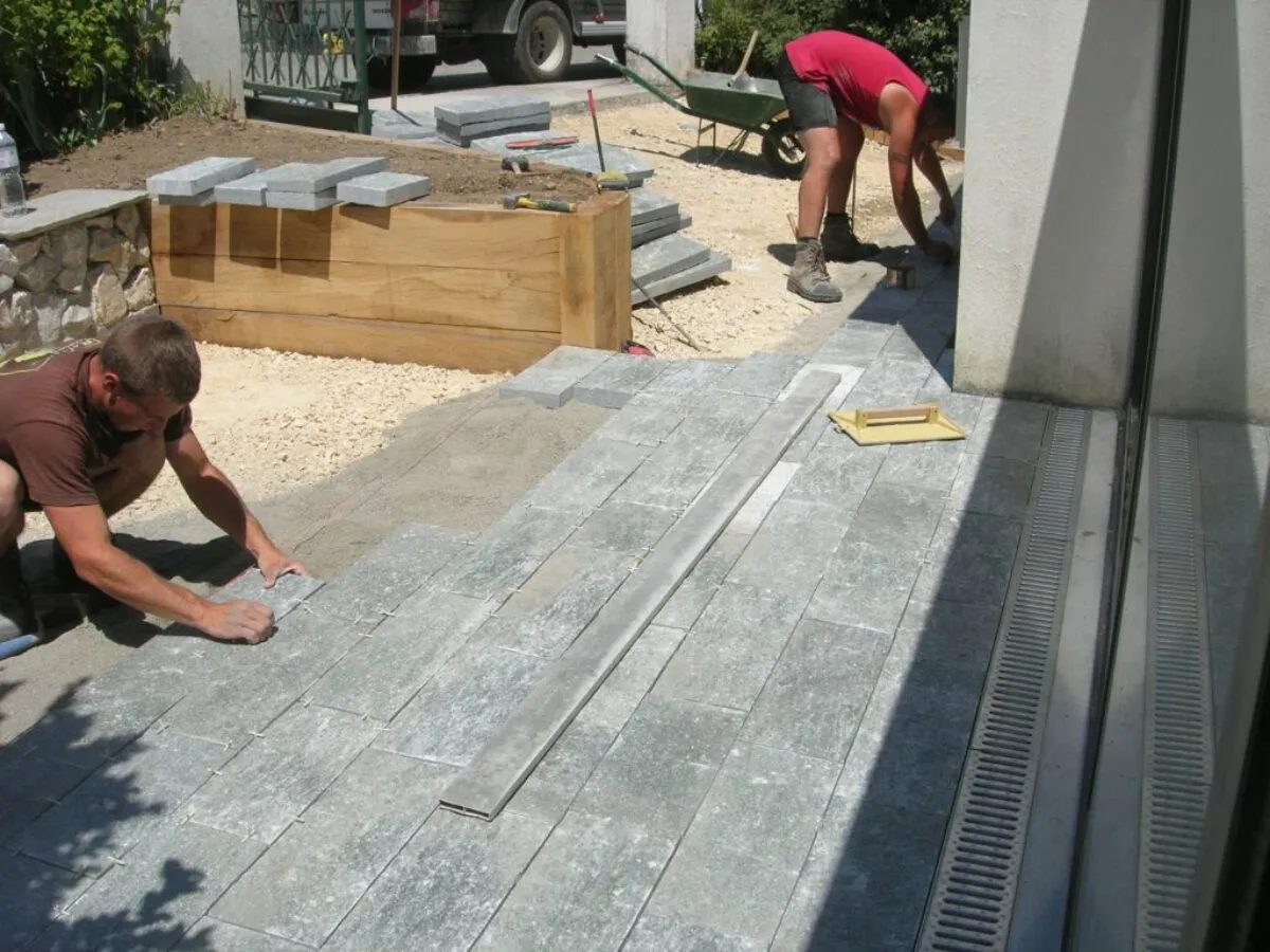 Techniquement, les dalles en pierres naturelles se posent de différentes manières (sur fond de forme en concassé compacté, sur une dalle béton collées ou sur plots). Les pavés se posent généralement sur un fond de forme en concassé compacté, après une préparation minutieuse visant à garantir la durabilité de l’aménagement.